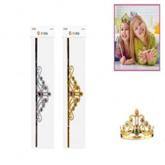 Corona de plástico disponible en dorado y plateado con detalles que simulan piedras preciosas.