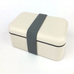 Fiambrera de color beige, estilo box lunch de un solo piso. Apto para microondas i lavavajillas, sin BPA y sin melamina.