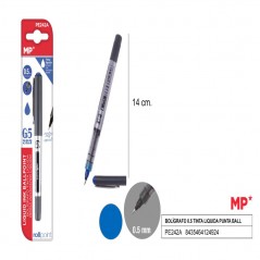 Bolígrafo 0.5 de tinta líquida de punta ball de color azul.
