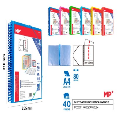 Carpeta con portada cambiable compuesto por 40 fundas y 80 micras.