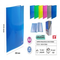 Carpeta translúcida de color azul compuesto por 30 fundas gruesas.
