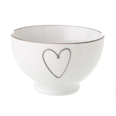 Bol de color blanco con detalles grises y silueta de corazón en la parte delantera central. Tres colores disponibles.