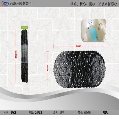 Alfombra de goma formada por circulos de diferentes tamaños. Producto reciclaje, succión potente, antideslizante y textura suave.