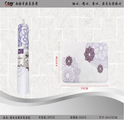 Alfombra de algodón con detalles de mandalas con detalles de color morado.