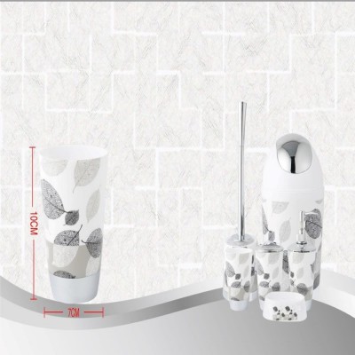 Vaso con estampado de hojas, colores neutros y negro, para baño, forma parte de una colección.