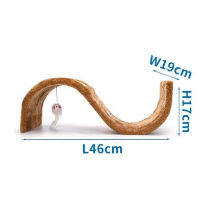 Panel rascador con forma de S para gatos, color café, muñeco de ratón incluido