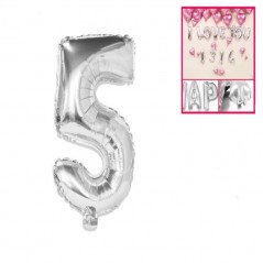 Globo de foil en forma de número 5 de color plateado. Resistente y reutilizable, apto para aire, adhesivos y auto cierre incluidos. Diferentes medidas disponibles.