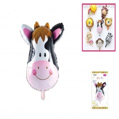 Globo de foil en forma de cabeza de vaca. Material resistente y reutilizable, apto para aire, adhesivos y auto cierre incluidos.