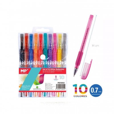 color: purpurina caracteristicas: pack de 10 bolígrafos de diferentes colores con purpurina, trazo de 0,7mm