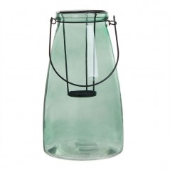 Jarrón portavelas de color verde efecto transparente con detalles en negro. Diferentes modelos disponibles.