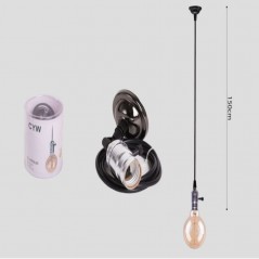 Portalámparas estilo vintage. Cable de color negro con detalle en plata. Diferentes modelos disponibles. Esta luminaria es compatible con bombillas de clases de energía.