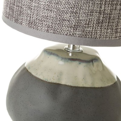 Lámpara de cerámica de tonalidades grises y pantalla de color gris oscuro. Cable negro con interruptor. No incluye bombilla.