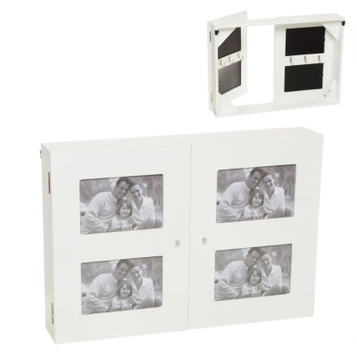 Tapa para contadores de color blanco. Incluye cuatro marcos para incorporar fotos y seis cuelgallaves plateados. Diferentes modelos disponibles.