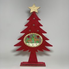 Stand en forma de árbol de Navidad con escena de renos, detalles de glitter y velvet