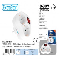 Adaptador formado por 2 bases, 1 entrada y 2 salidas con interruptor.