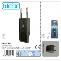 Enchufe plano y reemplazable con entrada de cable recta de color negro.