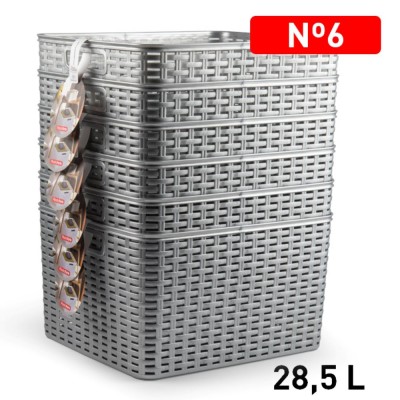 Cesta estilo mimbre de color plata. Diferentes modelos y colores disponibles.