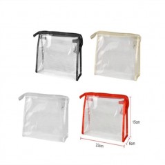 Neceser transparente con costura de color beige y detalle de rejilla en la parte interior. Diferentes modelos disponibles.