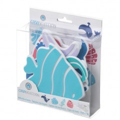 Alfombra de baño compuesta por figuras individuales con ventosas. Temática marina.