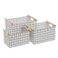 Cesta de color blanco con detalles negros y asas de madera. Diferentes medidas y modelos disponibles.