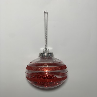Bola de Navidad transparente con detalles de color rojo con glitter