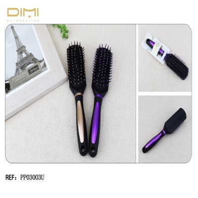 Cepillo plano con detalles dorados o violetas. Ideal para desenredar y cepillar marcados. También se usan mucho en grandes melenas que no busquen aumentar el volumen.