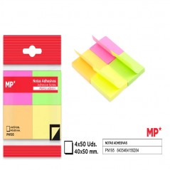 Pack de notas adhesivas de colores fluorescentes (rosa, verde, naranja y amarillo). Diferentes medidas disponibles.