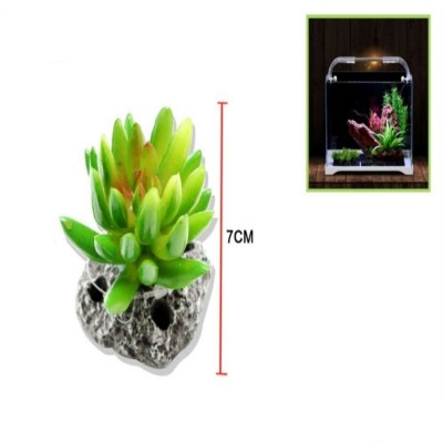 Adorno para acuario que simula una planta con base de piedra de color negro con detalles en plata.