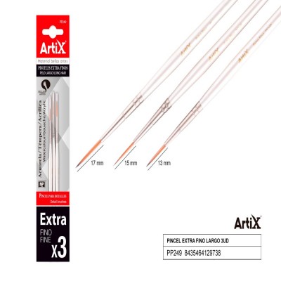Set de 3 pinceles extra finos y largos. Tres medidas incluidas.