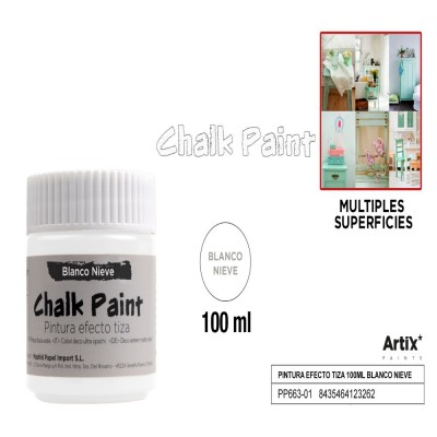 Pintura efecto tiza de color blanco nieve, ideal para múltiples superficies.