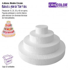 Base para tarta compuesta por 4 alturas para decorar con diversas técnicas de manualidades. Modelo circular.