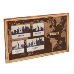 Portafotos estilo cuadro con temática de viaje en tonalidades de color marrón. Puede incluir cuatro fotografías.