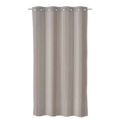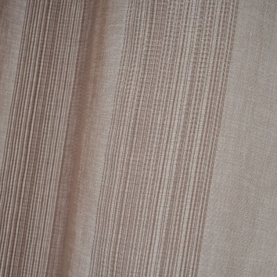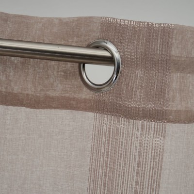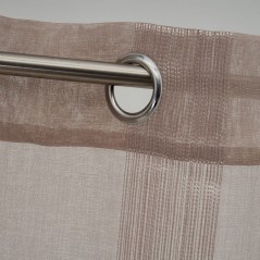 Cortina de color marrón con detalles lineales formados por hilos. Cortina formada por 8 anillas cromadas.