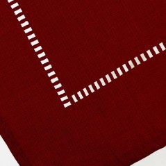 Mantel de color rojo con detalles en la parte inferior. Diferentes colores disponibles. No admite lejía ni secado en secadora. No admite limpieza en seco. Planchado máximo a 110º.