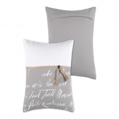 Características: Cojín medida 40x40CM, material 100% poliester, color gris, blanco con estampado y detalles en marrón