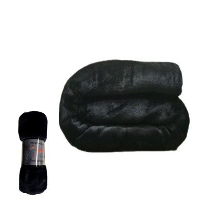 Manta lisa de color negro super suave, recortada e inspeccionada a mano. Super suave y ideal para su hogar.