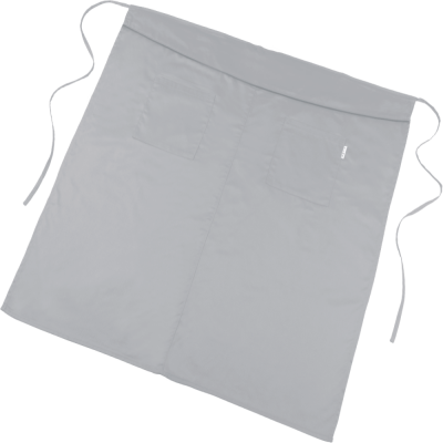 Delantal largo de color blanco con detalles en negro con dos bolsillos en la parte delantera. Prenda de cuidado fácil.