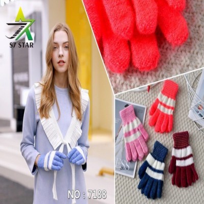 Guantes de mujer hechos de poliéster y acrílico, material suave, cómodo y cálido que asegura que sus manos se sientan calientes. Estilo sencillo, solo tienen dos rayas blancas de decoración.