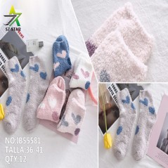 Calcetines de hilos plumosos con dibujos de corazón para mujer. Antideslizante