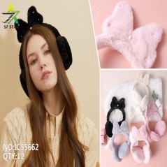 Orejeras de felpa que porta calidez durante el invierno, son esponjosos y delicados. Este modelo lleva un lazo con unas bolitas de perlas en la parte superior.