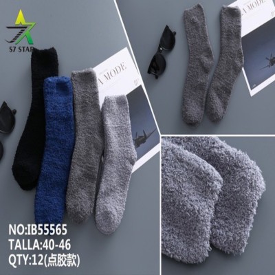 Calcetines cálidos y monocromos para hombre confeccionados con hilos de plumas, ideales para el invierno. Cuentan con perillas de goma de silicona en la parte inferior de los calcetines que brindan un agarre de tracción contra resbalones.