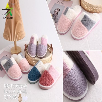 Pantuflas confeccionadas en algodón, buena permeabilidad al aire y buena resistencia al calor. Este modelo de zapatilla está diseñado para mujer y decorado con tres colores.
