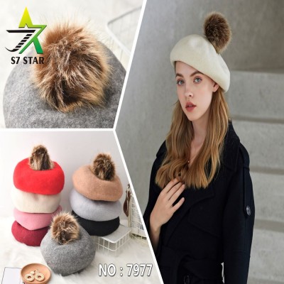 Boina con detalle de bola de pelo, diferentes colores disponibles.