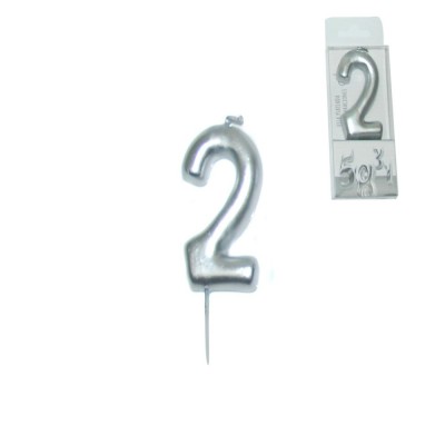 Vela de cumpleaños, número 2 plateado de un solo uso.