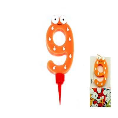 Vela de cumpleaños infantil, número 9 decorado de gran tamaño.