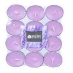 Pack de 12 velas con aroma a lavanda. Color violeta/lavanda.