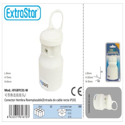 Replaceable female type connector with IP20 straight cable entry.