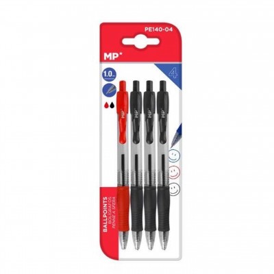 Characteristics: pack of 4 pens, one red and 3 black, with easy attachment, 1mm stroke