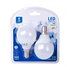 Pack of 2 LED bulbs A5 G45 big angle E14 6W 6400K
