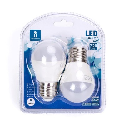 Pack of 2 LED bulbs A5 G45 big angle E27 9W 6400K